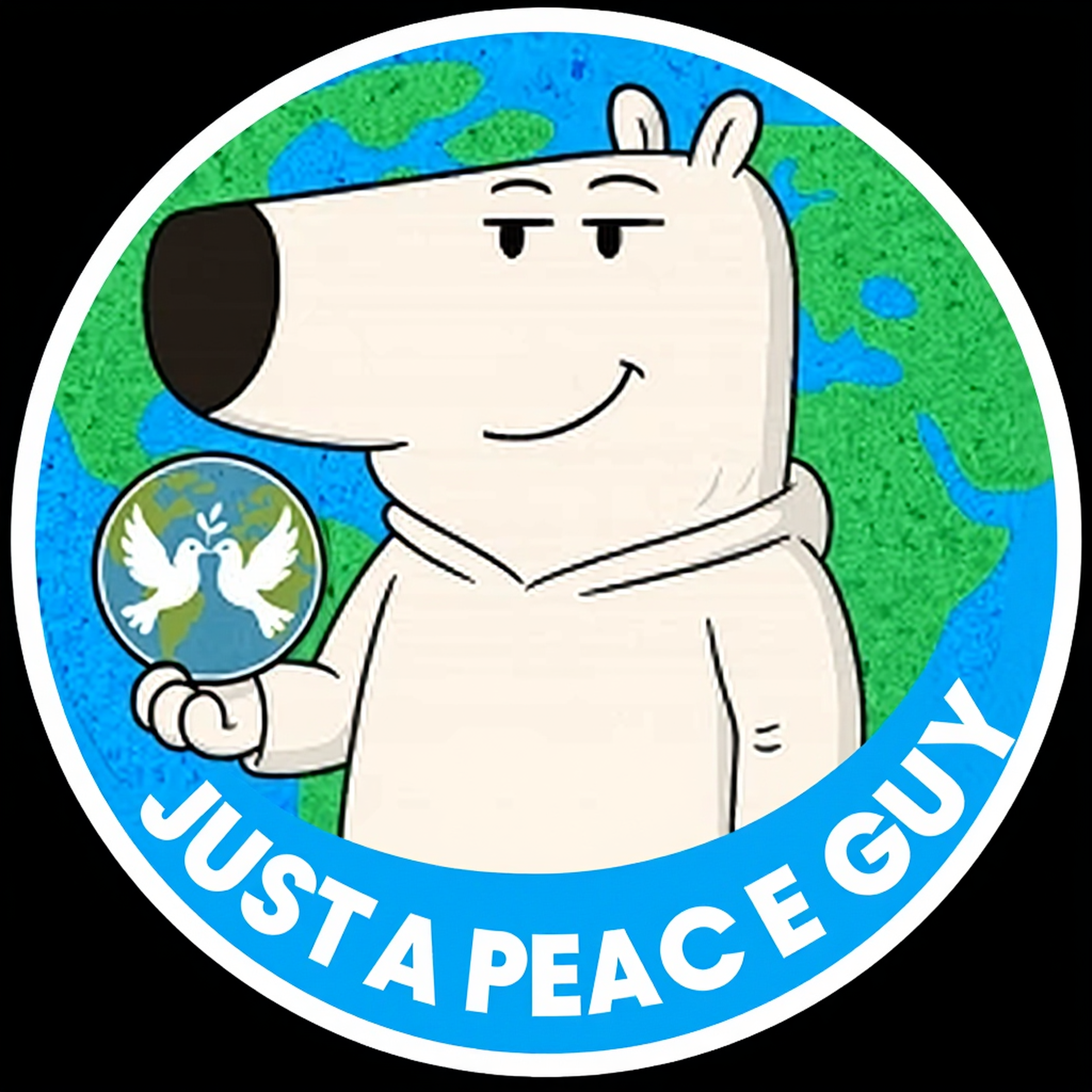 Just a PEACE GUY is a chill, peace-loving character who spreads good vibes, avoids drama, and believes in unity over chaos.